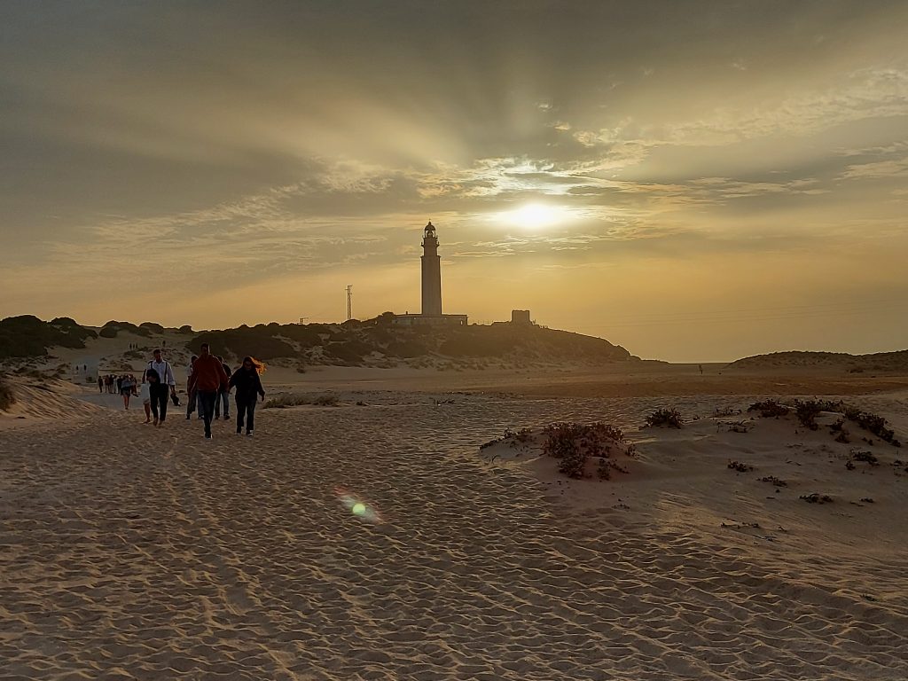 Pot od izhodiščne točke ob glavni cesti proti svetilniku na samem rtu traja okrog 20 do 30 minut v vsako smer. Do svetilnika sicer vodi cesta, a je ta zaradi pogostega vetra, ki piha z morja, prekrita z debelo plastjo mivke. Priporočljivo se je temu primerno obuti ali pohod opraviti kar bos. To vsekakor ustvari zanimivo doživetje. Ob poti je moč uživati v pogledih na številne manjše sipine ter kajterje, ki tu lovijo veter. Zaradi vetra je območje med Gibraltarjem in Cadizom pravi raj zanje. Na vrhu največje sipine stoji 34 m visok svetilnik, v neposredni bližini pa je leta 1805 potekala znamenita pomorska bitka, v kateri je britanska flota pod vodstvom admirala Nelsona porazila združeno francosko – špansko floto. Pohod je lahek in kot tak primeren skoraj za vse. Za obe smeri se potrebuje maksimalno eno uro.