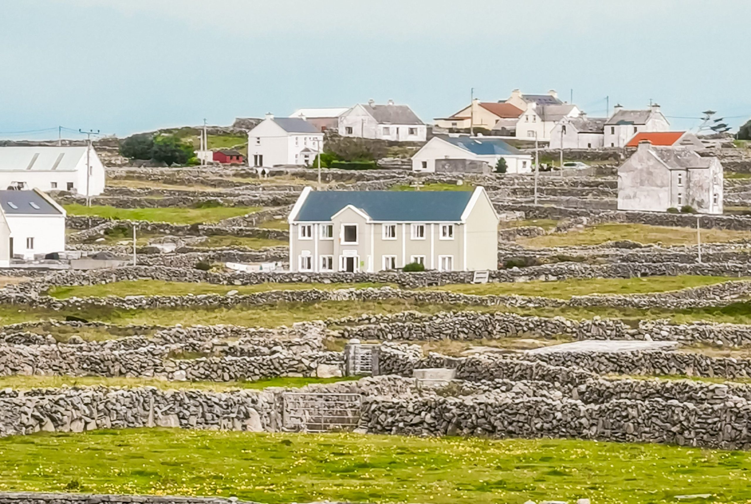 Pogled nam ves čas obiska otokov kradejo nizki kamniti zidovi, ki stojijo po golih sivih in črnih skalah. Zidovi delijo otoke na stotine drobnih njiv. Postavljeni so bili bodisi za mejo, bodisi iz nuje, kot odlagališče za kamenje, ki ga ročno poberejo po njivah. Ročno naredijo tudi zemljo, ki je dragocena mešanica peska, morskih alg in govna. Tukaj bojda raste najboljši krompir na Irskem.