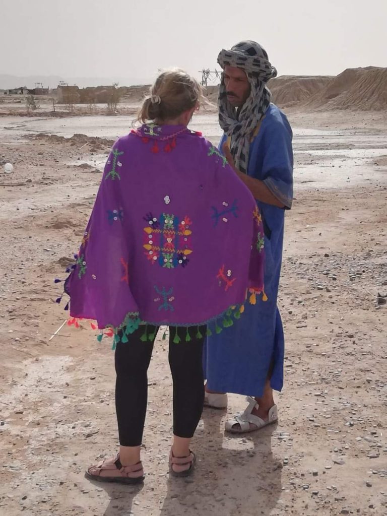 Na našem razširjenem potovanju vsak dan hodimo, spoznavamo izjemno raznovrstno naravo, srečujemo domačine in ugotavljamo, kako zelo je pomembna voda. Sredi popolne puščavske pokrajine je od kanalih vse zeleno, rastejo datljeve palme, v njihovi senci pa so rodovitni vrtovi s paradižniki, paprikami, žitom, krompirjem, deteljico za živino in prav vse drugo. Zraven pa še nasadi mandljevcev, oljk in rožni grmi … Zdi se nam, da smo dobesedno v raju na zemlji.