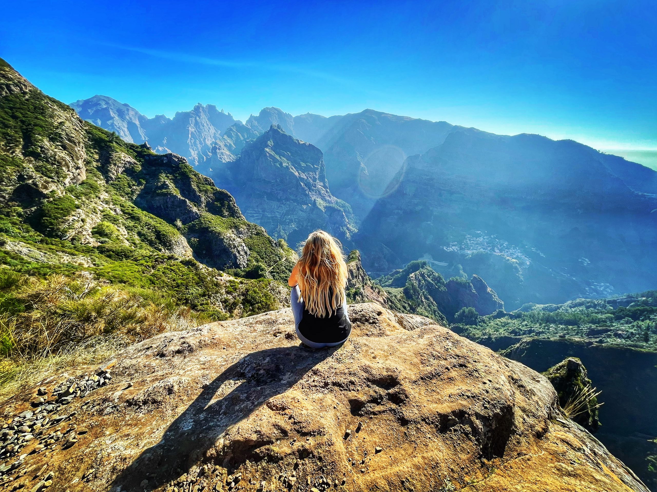Dan z največ sonca smo izbrali za eden in edini Pico Grande. Skalno tvorbo po navadi gledamo iz razgledne točke nad Nunsko dolino, danes pa smo jo osvojili. Celo pot so nas spremljali razgledi na polje vetrnic na planoti Paul da Serra, v daljavi se je svetlikala satelitska buča na Pico do Areiro in ostali najvišji vrhovi, pod nami pa se je skrivala Nunska dolina. Čudovita pot, polna bujnega rastja. Začetek je lahek, konec pa malo manj. 😊