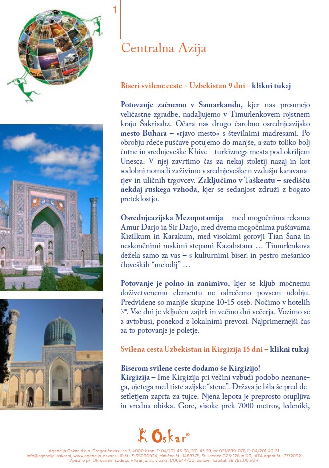 Tu je Oskarejva centralna Azija. Več … Oskarjevo poletje v centralni Aziji