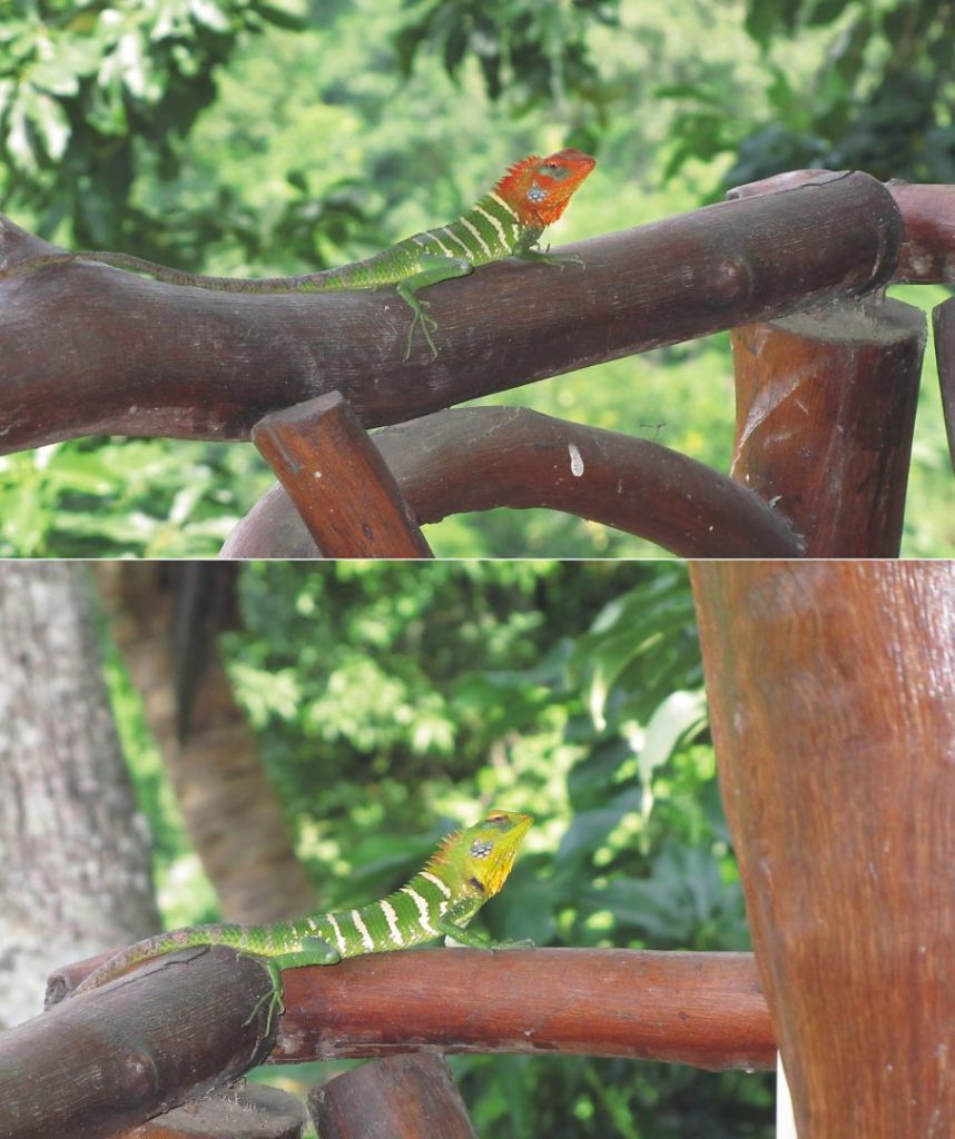 Obiskali smo tudi zavetišče za želve. V njem osveščajo ljudi, s čim vse ogrožamo želvice in kako jim pomagati. Pokazali so, kako jim pomagajo tudi umetno na svet, da tako dodatno zaščitijo kakšno vrsto pred izumrtjem. Najprej zakopljejo jajčka v pesek, nato jih budno spremljajo, dokler ne prikukajo živali na svet. Sprejemajo pa tudi ranjene želve in jih potem, ko ozdravijo, vrnejo v morje. Ko so nam predstavljali vrste, mi je vodič eno dvignil iz bazena in mi jo dal v roke. Morala sem paziti, da mi želvak ne pade iz rok, saj dvignjen v zrak začne kriliti s svojimi okončinami, tehta pa nekaj kilogramov. Smo pa tako najlepše videli zanimive vzorce na želvjih oklepih, po katerih se ločijo posamezne vrste. Posebno doživetje me je čakalo po prihodu domov, ko sem si ogledovala fotografije. Na Adamovem vrhu sem naredila kup slik nekega kameleončka, ki mi je bil zelo všeč. Šele na domačem računalniku sem opazila, da je nenadoma spremenil barvo glave in vratu iz živo rdečkaste v zeleno. Tam tega od navdušenja, da sem ga sploh lahko posnela, nisem niti opazila. Kaj takega…