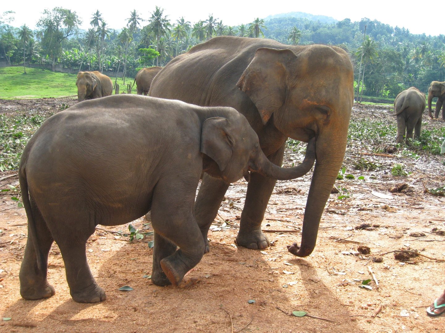 Slone smo imeli možnost opazovati še dvakrat. Najprej divje slone v narodnem parku. Nikoli si ne bi mislila, da je slonova barva tako učinkovita. Si lahko predstavljate, da gledate v velike slone iz oddaljenosti 10 metrov, pa jih ne vidite, zakriva pa jih nekaj vejic skoraj posušenega drevesa? Šele ko se začnejo sence slonov premikati, vidiš, da se premika slonja kolona. V Pinawali smo si ogledali tudi sirotišnico, za katero prav tako upam, da služi pravemu namenu. Po enih trditvah tam skrbijo za slončke brez mater in jih tam vzgojijo v odrasle osebke, sliši pa se tudi, da slončke ugrabijo iz divjine in morda niso vsi sirote. Kdo bi vedel. V sirotišnici ni bilo videti nič spornega. Če se kaj slabega dogaja, se zagotovo ne dogaja pred našimi očmi. Verjamem pa, da se Šrilančani veliko bolj zavedajo vrednosti in pomena slonov (kot na primer Indijci), da jim zdravi lahko dajo več. Veliko pri tem pomaga tudi v državi prevladujoča budistična vera, ki uči, da ne smemo povzročati trpljenja nobeni obliki življenja.
