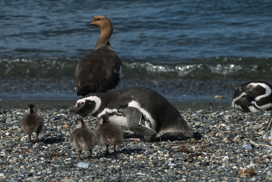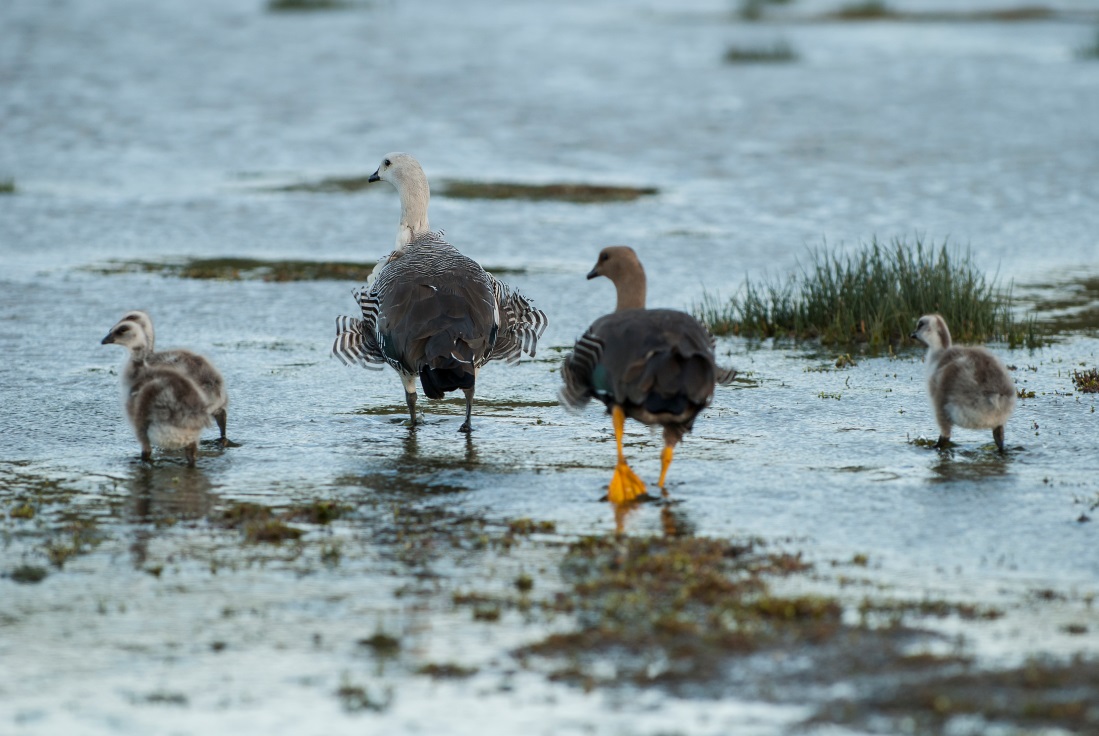 Naš prvi resni stik s ptiči Južne Amerike se je zgodil na Ognjeni zemlji. Kakšno uro po pristanku v Ushuaii smo se odpravili na ogled najjužnejšega narodnega parka na svetu, in sicer Parque Nacional Tierra del Fuego. In najprej so se nam predstavile Magellanove gosi. Te so nas spremljale čez celo Patagonijo – nekatere še poparčkane, druge pa že z otroki.