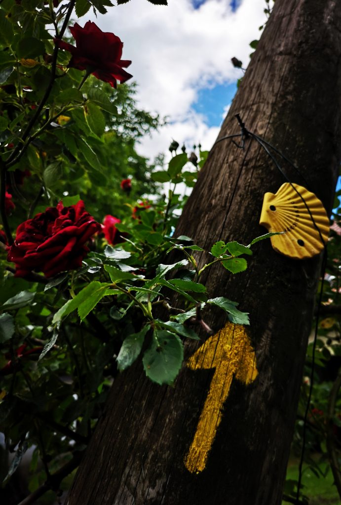 Jakobovo pot označuje rumena puščica in rumeno pobarvana školjka. Zakaj ravno školjka? Zgodba pravi, da so sv. Jakoba mučili, vrgli v morje in ga je odplaknilo do Španije. Ko so ga spet našli, je bil poln školjk.