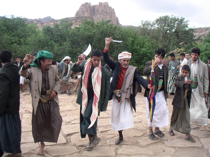 V gorovju Haraz živijo ljudje v kamnitih srednjeveških gradovih in citadelah, Vadi Hadramaut je poln stolpnic iz blata, puščavski beduini živijo v šotorih, v nižinski Tihami ob Rdečem morju pa so prave afriške kolibe iz palmovih debel in listja. Moški hodijo gizdalinsko oblečeni v krila, z džambijami (noži) in mobilnikom za pasom ter brzostrelko na rami. Zato pa žensk v javnosti skorajda ni videti, če pa že, so od glave do peta pokrite s črnimi oblačili. Samo velike temne oči se bliskajo skozi tanko režo.