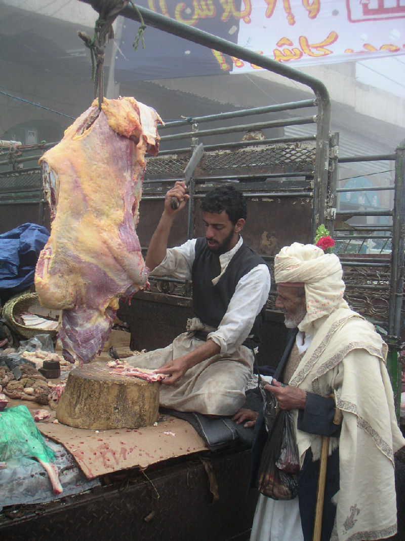 Plinski plameni švigajo do stropa, ogromen kotel riža stoji visoko na podstavku, v enem kotu pečejo hops, v drugem brbota čaj, v tretjem se vrtijo piščanci. Jejo na tleh z desno roko. Tujcu izjemoma pogrnejo mizo s časopisom in lahko dobi tudi malago, kot se reče žlici. Pripravljajo okusne sadne sokove iz manga, papaje in pomaranč. Slaščice so orientalsko sladke. Zabadi je ime za dober jogurt. Edina stvar, ki občutljivega popotnika v začetku moti, so kupi smeti in vrečk na krajih, kjer se odvija trgovanje. A za to niso krivi toliko sami, kot je kriv prodor civilizacije v obliki plastike, stekla in pločevine. Stoletja so metali na tla organske odpadke, ki so jih nato požrle ovce, koze ali kamele in se le s težavo navajajo na zabojnike, ki so v večjih naseljih že postavljeni. A tudi to ne zaleže, saj nato odpadki končajo v jarku zunaj kraja, veter pa jih raznese vse naokrog, da osamljeni grmi izgledajo kot drevesa želja. V nasprotju z okoljem pa je notranjost hiš urejena in čista. Jemenci imajo poseben odnos do bivanja in uživanja, radi posedajo na blazinah v udobnih mafradžih s polnimi usti katovega listja in razpravljajo, pa tudi pojejo in plešejo.