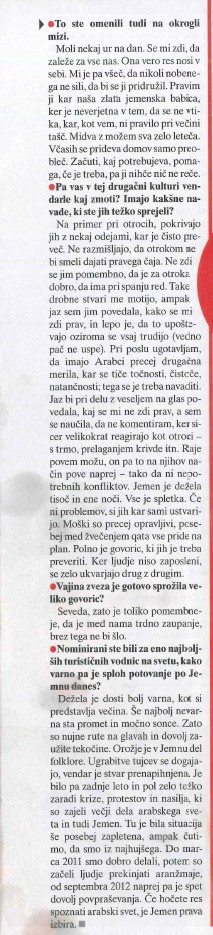 Naša Tina Zorman, ki živi v Jemnu je za revijo Jana povedala;