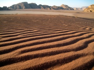 Eden najlepših predelov Arabske puščave se proti jutru počasi umiri. Prebudimo se v njegovo značilno zlato-rdečo pokrajino. Dva dneva pohajkovanja po Wadi Rumu, ki je raznovrstna kombinacija peščenih dolin in skalnatih klifov, sta presegla vsa naša pričakovanja. Večino poti smo prehodili izven zavarovanega območja parka, zato smo srečali le redko katerega turista. Med hojo je bilo oblačno in ves čas je rahlo deževalo. Prav zaradi tega hoja ni bila naporna, saj so oblaki in dež prijetno ohlajali ozračje.