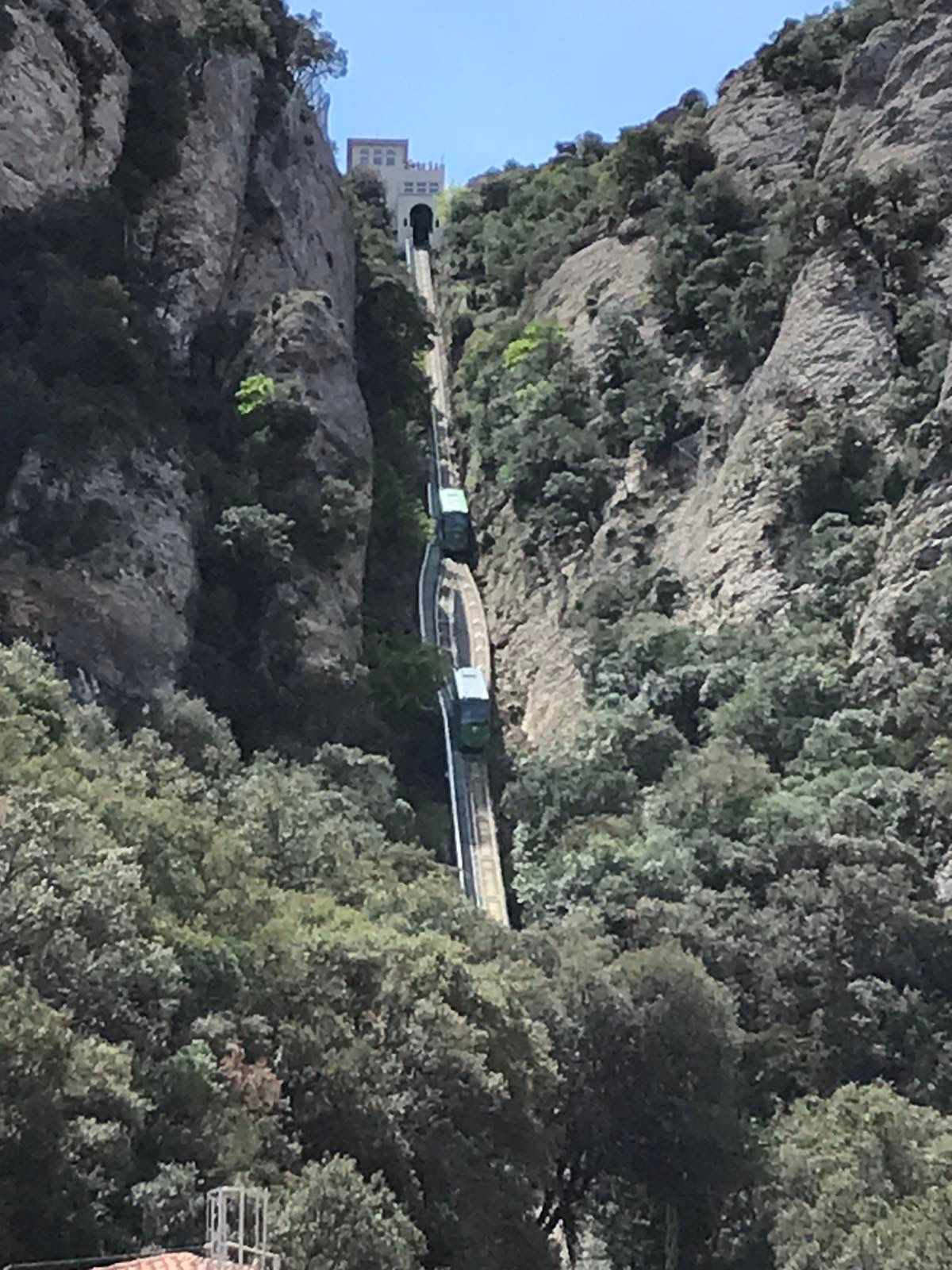 Tja pridemo z vlakom, ki pelje iz Plaze Espanye, ki se nahaja pod vznožjem barcelonskega hribčka Montjuic. Vzame nam dobro uro do vasice Montrol de Montserrat, kjer prestopimo na vzpenjačo – vlakec, ki se dviguje počasi proti benediktinskem samostanu med »razžaganimi« vrhovi, po katerih je sveta gora dobila ime (špansko: »aserrar«).