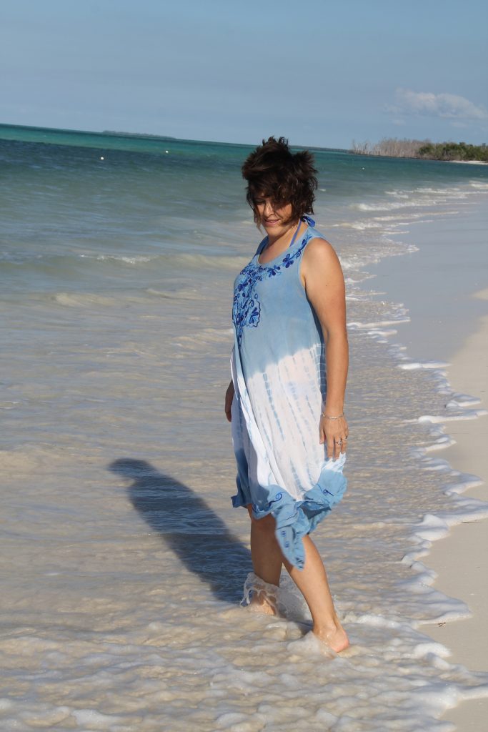 Naj omenim še plaže, prav takšne, kot so na razglednicah, palme, sonce, prelepo morje in ojoj, nekaj, kar moji Tatjani ne odgovarja niti malo. Ko sem jo prvič videl stopiti na mivko, je izgledalo, kot bi stopila na žerjavico. korak za korakom, z veliko težavo je šla proti vodi. Tisti izraz na obrazu je dal vedeti, da ne mara tega, da mivko sovraži in da bi najraje poletela do vode. In ko je bila enkrat v vodi, potem pa ni in ni prišla iz nje, kar tam je bila, se namakala in plavala in čakala, da mivka čudežno izgine.