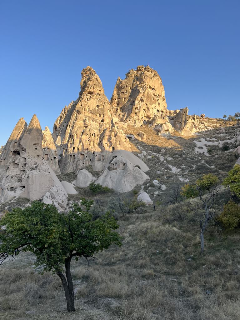 Počasi se začnemo vzpenjati na 1000m visoko planoto, imenovano Kapadokija. Ali ste vedeli, da Kapadokija v perzijščini pomeni dežela lepih konj? Tako dva dni, kot v pravljici, pohajkujemo med magičnimi stožci, raziskujemo jamska bivališča, nad in pod zemljo, in spoznavamo tradicionalno obrt (keramika, preproge, oblikovanje kamnov) ter turško folkloro. Ob letenju z barvitimi baloni, ob sončnem vzhodu, lahko poiščemo še kakšno letečo preprogo, kaj pravite?