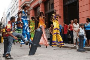 Jutranji sprehod po starem centru Havane, popolnoma se še ne zavedam kje sem, sprehajamo se po uličicah, za vsakim vogalom je nekaj novega, drugačnega. Za hip postanem iz zaslišim zvok oddaljene glasbe, za katerega se mi zdi, da se vedno bolj približuje. Še trenutek in znašli smo se v vrvežu barvite povorke uličnih plesalcev! Pravi plesalski mojstri so plesali in izvajali akrobacije na visokih hoduljah, ob spremljavi žive glasbe; bobnov, zvoncev, lesenih tolkal in petja. Množica je postajala vedno večja in bolj ko smo vzpodbujali nastopajoče, bolj zanimiva predstava se je odvijala pred našimi očmi. Divji ritmi glasbe, nasmehi nastopajočih in barvita oblačila so jasno povedali, da smo prispeli v drugačno realnost.