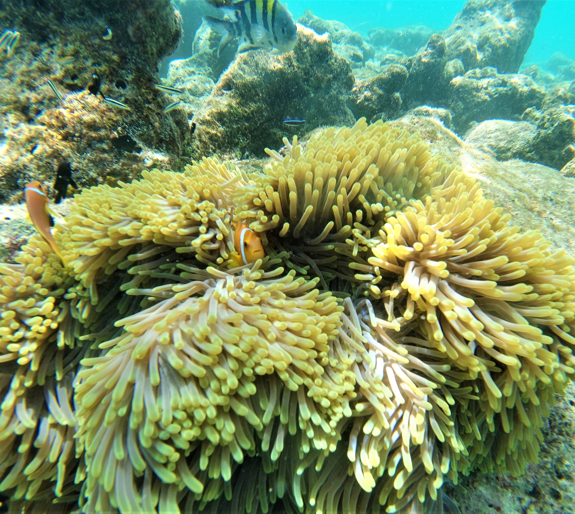Vsak dan organiziramo različne izlete na bližnje koralne grebene in otočke, kjer nas vedno znova čaka nepozabno doživetje. V hotelu si lahko brezplačno izposodimo masko in plavutke in se odpravimo snorkljat na Fish garden ali Coral garden. Že samo ime nam pove, da so na prvi lokaciji v ospredju ribe raznoraznih barv in oblik ter na drugi mehke in trde korale. Takoj, ko skočimo v vedno prijetno toplo vodo (28 stopinj), smo obkroženi s pisanim podvodnim svetom in z nekaj sreče mimo priplava želva ali pa nas pozdravi morena. Čas se lahko za nas ustavi, saj imamo svoj čoln in nas nihče ne priganja, razen kosila. Vmes se tako odpeljemo na bližnji samotni peščeni otoček na slastno kosilo in kopanje.