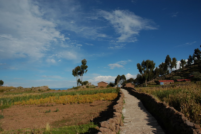 Dobre tri ure plovbe v srce jezera, barki zapre pot pravi otok, Taquile. Na tem v vodo vklenjenem kosu zemlje, dolgem kakšnih šest kilometrov in širokem kilometer, dva, živi približno dva tisoč domačinov, Indijancev iz plemena Kečua, katerih svet je omejen na teh par kvadratnih kilometrov, čas pa teče tu z drugačnimi koraki kot drugje.