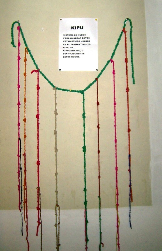 Sprehod po bujno rastočem vrtu grmovnic, ki so pri nas doma običajno tako majhne, da uspevajo kar v cvetličnih lončkih, mi je pričaral zlato inkovsko dobo, tako kot tudi njihovo vero v tri simbole – kondorja na nebu, pumo na zemlji in kačo v vodi. Da tega ne pozabim, sem si kupila tovrstno T-shirt. Sicer pa je tudi zemljevid Peru simbolna puma, če ga pogledaš s prave strani – obrnjeno! Rep je na severu, z glavo pa sega v Čile, katerega velik kos je pripadal Peruju v zlati dobi inkovske nadvlade. Ko je po prvem velikem Inku Pachacutequ, ki je vladal od 1438 do 1471, zavladal njegov vnuk Huayno Capac (1493-1524), je inkovsko kraljestvo zajemalo že vse Ande in obalo od Ekvadorja do Santiaga v Čilu! Z organizirano proizvodnjo hrane na namakanih dolinah in prostranih terasah nad vasmi, gojenjem lam in alpak, ter s svojim jezikom kečua kot uradnim v vsem  kraljestvu, jim je uspelo centralno in učinkovito vladanje. Zgradili so ceste v vse dele svojega kraljestva, po katerih so sli prenašali sporočila iz najbolj oddaljenih krajev v Cusco. Niso poznali pisave kot jo razumemo danes, imeli pa so učinkovit sistem vozlov na vrvici – kipu, ki jo je sel skrbno prinesel na pravo mesto. Sli so bili neverjetni tekači, ki so se menjavali na razdaljah – bili bi konkurenčni vsem današnjim maratoncem! Kipujev je zelo malo ohranjenih, saj so jih Španci načrtno uničevali.