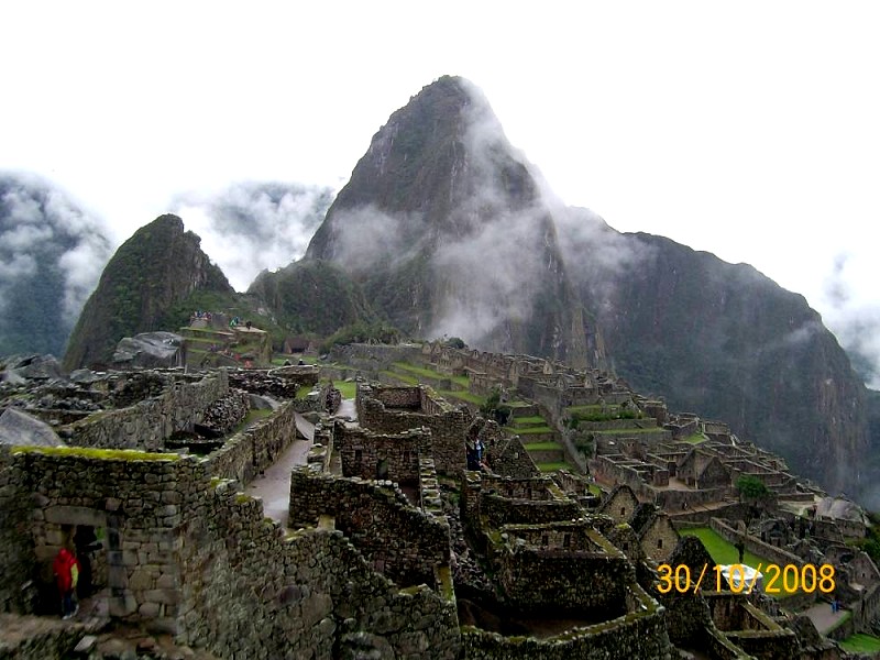 Zelo zgodaj zjutraj smo se s posebnim avtobusom odpeljali po številnih serpentinah proti Machu Picchuju. Med potjo sem naštela okoli dvajset tovrstnih avtobusov, ki so me spominjali na gondolski krožni promet na kakšnem zelo obiskanem smučišču. Sicer pa je bilo tokrat zaradi deževnega tedna obiskovalcev nekoliko manj, je zatrdil naš lokalni vodič. A imeli smo srečo – po dolgem deževju se je zgoraj kmalu zjasnilo, čeprav je bil prvi pogled na svetišče resnično mističen. Meglice okoli vseh treh vrhov, od katerih mi je tisti ‘happy mountain’, ki je tudi najbližji, najbolj pri srcu. Ker je v sredini, ker ima tako lep naziv, ali ker sem tudi sama v takih trenutkih tako zelo rada srečna? Medtem ko Machu Picchu v jeziku kečua pomeni ‘Stari vrh’, njegov nasproti ležeči hrib Huayna Picchu pa ‘Mladi vrh’. Najpogumnejši se nanj povzpnejo, a je število plezalcev omejeno, ker je pot ozka in mestoma nevarna. Dopuščena sta le dva vzpona dnevno, dopoldan in popoldan. Čeprav je tu višina znosnejša, najdišče leži na 2.400 metrih, je množica ljudi toliko bolj neznosna, kajti vsepovsod jih je polno – tako pred monumentalnim Templjem treh oken,, okoli Sončnega templja, kjer so Inki častili sončni obrat, ko narava spet oživi in obdari, in pa nad najvišjo točko mesta, kjer izstopa iz svetlega granita izklesan kamen Intihuata – Kamen za privez sonca, ki izžareva posebno energijo in predstavlja sončno uro. Dotikanje kamna prepovedano! Sprehod proti terasam in pogled na zelenico pod ruševinami, kjer se je paslo nekaj lam, nam je prikazal uničen prostor, kjer so nekoč pristajali helikopterji in tako še povečali obleganje turistov. Zdaj je zelenica zavarovana in spet se lahko pasejo lame in alpake. Morda se vrnejo tudi kondorji?
