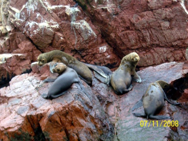 Pomislila sem že na kak pevski zbor, ki se uglašuje, ko sem uzrla vsaj petdeset morskih levov v kotanji pod skalnim mostičem, ki so zadovoljno ‘prepevali’. Na višjem ležečem skalovju pa so se pokazali galebi, strmoglavci, pingvini, kormorani – vsi pomešani med seboj, a vendar tudi po parih! Pod njimi so se nabirale ogromne količine dragocenega belkastega ‘guana‘, najboljšega gnojila na svetu, ki je menda že tudi rešilo perujsko gospodarstvo, pa tudi skoraj zanetilo vojno s Čilom! Kake pol ure dolga plovba med otočki, ki so bili še vedno zaviti v megleno jutro, mi je približala morske leve in ptiče v najrazličnejših položajih, tudi tistih najbolj lenobnih, ko so se veliki morski sesalci kar prilepili na skale in le tu in tam radovedno obrnili glave proti nam. Otočje so pred nekaj leti zaščitili in je dostopno le v jutranjih urah s čolna. Tudi živali potrebujejo svoj mir!