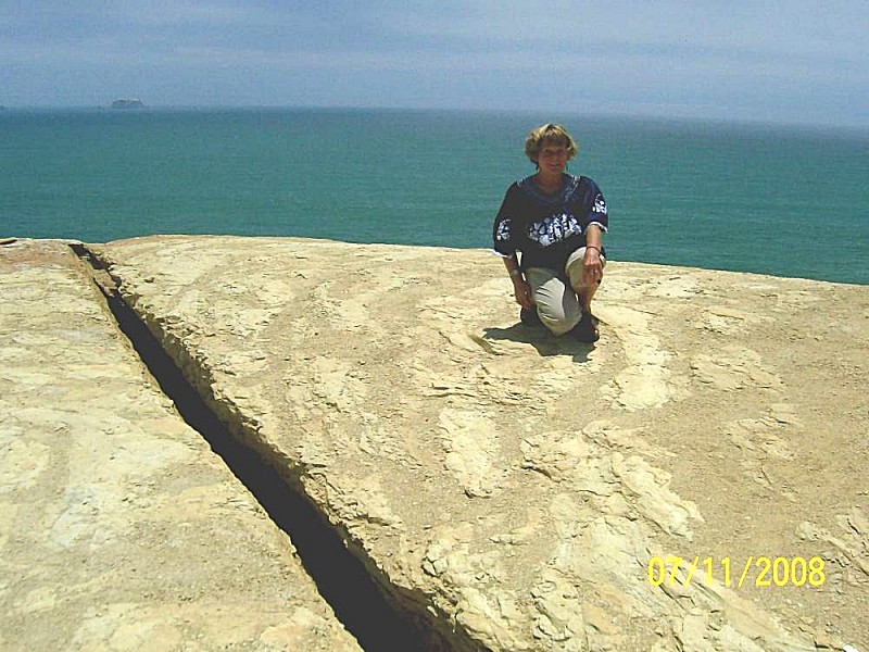 Zapustili smo deželo vulkanov in se spustili v suh, puščavski pas Atacamo, ki se razteza med Andi in obalo Tihega oceana, in ki ozeleni le tam, kjer se kakšna reka prebije skozenj do izliva v morje. Razteza se od čilske meje na jugu pa vse do glavnega mesta Lime in naprej. Srečanje s Tihim oceanom je bilo nenavadno. V meglice odeta plaža, še brez turistov, saj je tu šele nekakšna pomlad, nas je pozdravila z nenavadnim pobegom oranžnih rakovic z varnega peska v peščene luknje! Tudi morske ptice so završale in odletele od nenapovedanih dogodkov, ki bi jih lahko povzročilo naše gostovanje na njihovem terenu, pa čeravno le za kratek čas, toliko da smo pomočili noge v morje, ki nas je hotelo zaliti, čim smo stopili predaleč. Največje svetovno vodovje, Pacifik – je kaj drugačen od bolj poznanega Atlantika? Ferdinand Magellan ga je imenoval za ‘mirno morje’. Humboldtov tok ga ohlaja z juga, zato skoraj ni padavin, nudi pa izredne pogoje morskemu življu in prebivalcem dober ribolov. Puščava tik ob morju je res nenavadna podoba, ko ob cesti raste le kakšen osameli kaktus, medtem ko na puščavskih predelih revni Peruanci kupujejo zemljišča in jih zaznamujejo s preprostimi škatlastimi okvirji, ki ponavadi nosijo napis lastnika. V Naszo smo prispeli pozno, in v hotelu Allegra prespali, mene pa je bolj razveselil manjši bazen, kjer sem si lahko pretegnila zasedene ude. Pridružil se mi ni nihče, tudi zjutraj ne. Po zajtrku sem si ogledala nekdanje zanikrno mestece, v katerem se prebuja turizem le zaradi skrivnostnih puščavskih črt v bližini. Da bi jih narisali vesoljci, kot je sporočal Erich von Däniken, je malo verjetno!