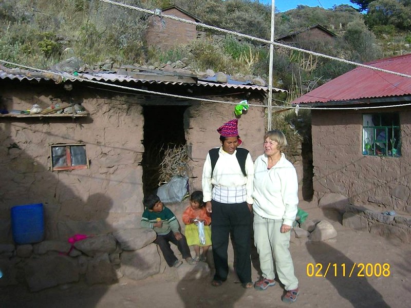 Naš gospodar je bil silno ponosen na svojo hišo, ki je bila kot vse druge iz blata, po tleh seno, postelja prekrita s težkimi tepihi. Predstavil je ženo, ki je govorila samo jezik kečua, medtem ko je on kar dobro obvladal španščino, česar sem bila res vesela, saj sem lahko ponovila tudi svoje najnovejše znanje. Mislim, da sem spala v otroški sobi, moji sosedje pa v zakonski postelji, saj mi je svetila le sveča, medtem ko so se domači stisnili kar v kuhinji, v kateri je brlela ena sama žarnica iz sončnega kolektorja. Stranišče na štrbunk (brez vrat!) in kopalnica (meh z vodo in košček že zelo obrabljenega mila ob napol umazani brisači) je bilo na drugem koncu dvorišča. Če me ne bi prijazni gospodar, ki je ves čas pletel rokavico (menda ročna dela prodajajo zadrugi, česar ne pokupijo turisti), spremljal tako do jedilnice na vrhu hriba in zjutraj do obale jezera, v katerem sem se okopala kljub nizki temperaturi (in pomislila na Gradaščico!), ne bi znala priti nikamor. Obljubila sem mu slike, ki sem jih že poslala po elektronski pošti lokalnemu vodiču. Na poti nazaj proti celini sem razmišljala, kako srečni so ljudje na tem otoku, ponosni na svoje korenine in skromno imetje. Saj res, kaj pa nujno potrebujem razen zdravja, poguma, dobre volje? Denar ni sveta vladar, prej sovražnik. Imeti ga ravno prav in potrošiti za življenje, ki je lahko najbolj zanimivo potovanje, če ga le dobro usmeriš.