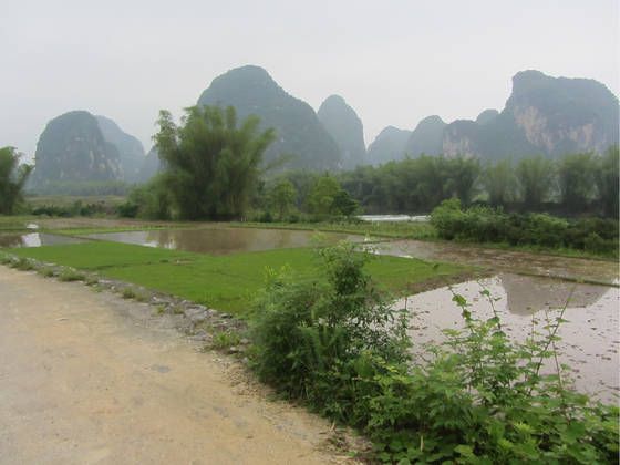 Zjutraj smo se iz Guilina z ladjico odpeljali v Yangshou, živahno in pisano manjše mesto sredi idilične kraške pokrajine ob reki Li. Beseda »li« v kitajščini pomeni »jasen, prosojen«, a reka je vse prej kot taka. Je zaspane zelene barve in se počasi vije proti jugu. Kitajci pravijo, da je podobna žadastemu traku.