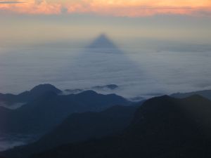 Veličastno pride. Z neverjetnimi barvami. Ob divjem zvonenju. Prerivanju množice. Vsak si želi biti tam zraven. Tu je nov dan, sonce vzide in ves trud je poplačan. Cilj je dosežen. Čez nekaj minut na nasprotni strani od sonca v zraku obvisi fantastična senca Adamovega vrha. Kot popolna piramida je. Prav nič ne spominja na vrh sam. Nenavaden prizor, ki traja le nekaj minut…
