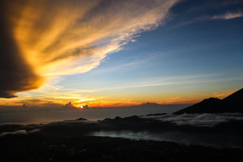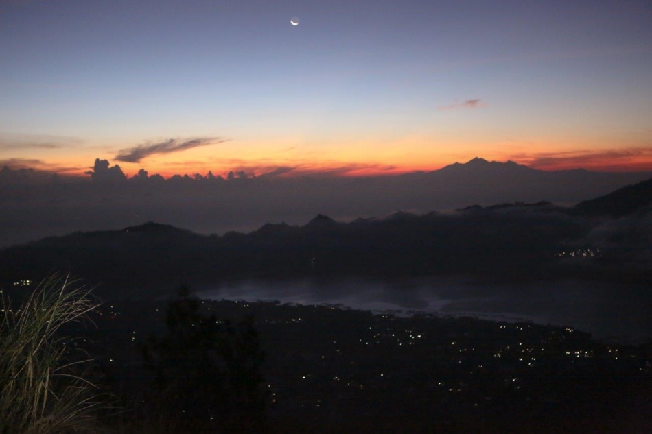 Za zaslužen zajtrk skoraj ni bilo časa, saj se je začela veličastna predstava sončnega vzhoda, trenutno spreminjajoče narave okoli nas. Iz vzhoda je nad nas gledal visoki Rinjani (Lombok), kamor se naša skupinica povzpne naslednji teden. Na Baliju smo občudovali najvišji vrh Agung, sveto goro bogov, balijsko Šambalo ter še en vulkan na vzhodu, Bratan. Okoli nas je bila kaldera prvega vulkana in pod nami se je svetlikalo veliko vulkansko jezero. Bilo je izjemno.