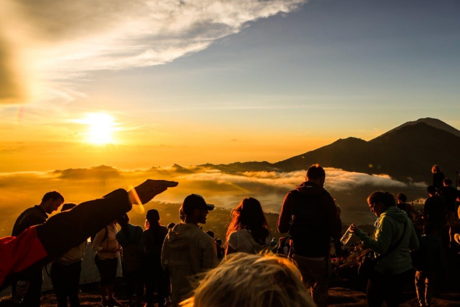 Vzpeli smo se na vulkan Batur (1.717 m) na vzhodu Balija. Pot navzgor je trajala dobri dve uri. Hodili smo po temi in nismo videli, kje smo pravzaprav šli. Bilo nas je veliko, iz vseh koncev sveta, kot mala gosenica smo z lučkami grizli v hrib. Na poti proti vrhu se je od vzhoda začelo svitati. Iz trenutka v trenutek se je spreminjala svetloba in očarani smo prišli na vrh le kakšnih 20 minut pred sončnim vzhodom.