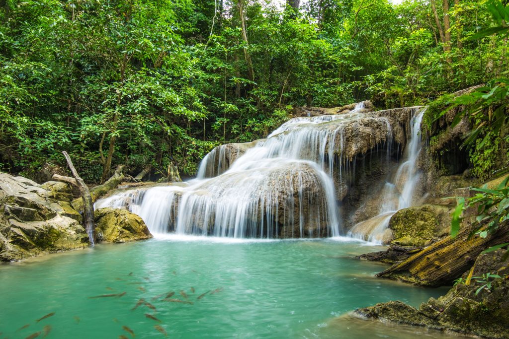 Osrednja Tajska je predel naravnih parkov in v Erawanu se umaknemo v hlad tropskega gozda ob pohodniški poti, speljani mimo sedmih slapov. Privoščimo si plavanje v ohlajenih tolmunih in jezerih, ki se naredijo pod slapovi. Družbo nam delajo velike ribe, ki so zelo družabne in se pustijo božati (resnično!) in metrski kuščarji, ki se sprehajajo po parku v iskanju hrane, kot potepuški mački. Smo v nekem drugačnem svetu, sedaj je to jasno.