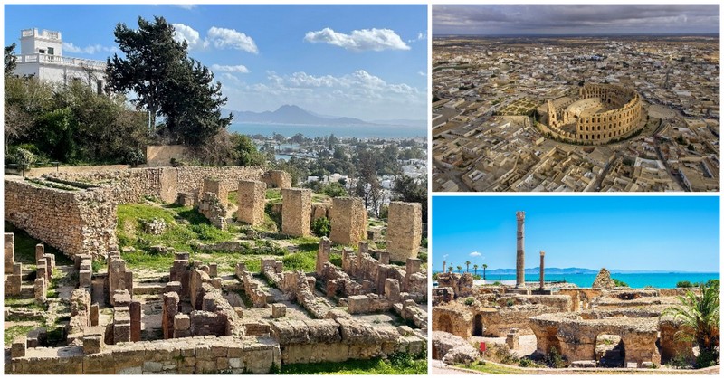 Tunizija je prava zakladnica zgodovine, kjer se zdi, da vsak kotiček pripoveduje svojo zgodbo. Nedvomno ne smete izpustiti bisera kartažanske civilizacije – ostankov antičnega mesta Kartagina. Nekdanje največje mesto zahodnega dela rimskega imperija je na svojem vrhuncu moči imelo vsa feničanska območja v Severni Afriki in obale jugovzhodne Španije in je štelo od 3 do 4 milijone prebivalcev. Najbolj znan prebivalec mesta je bil državnik Hanibal, ki slovi po nepozabnem vojaškem pohodu s sloni čez Alpe. Danes se na tem mestu nahajajo starodavni ostanki mogočnih stavb kot so Antonske terme in hrib Byrsa s Hanibalovo četrtjo. Če ste ljubitelj rimske zgodovine, morate obiskati amfiteater v El Džemu, eno izmed najbolj ohranjenih rimskih aren na svetu, poleg rimskega Koloseja.