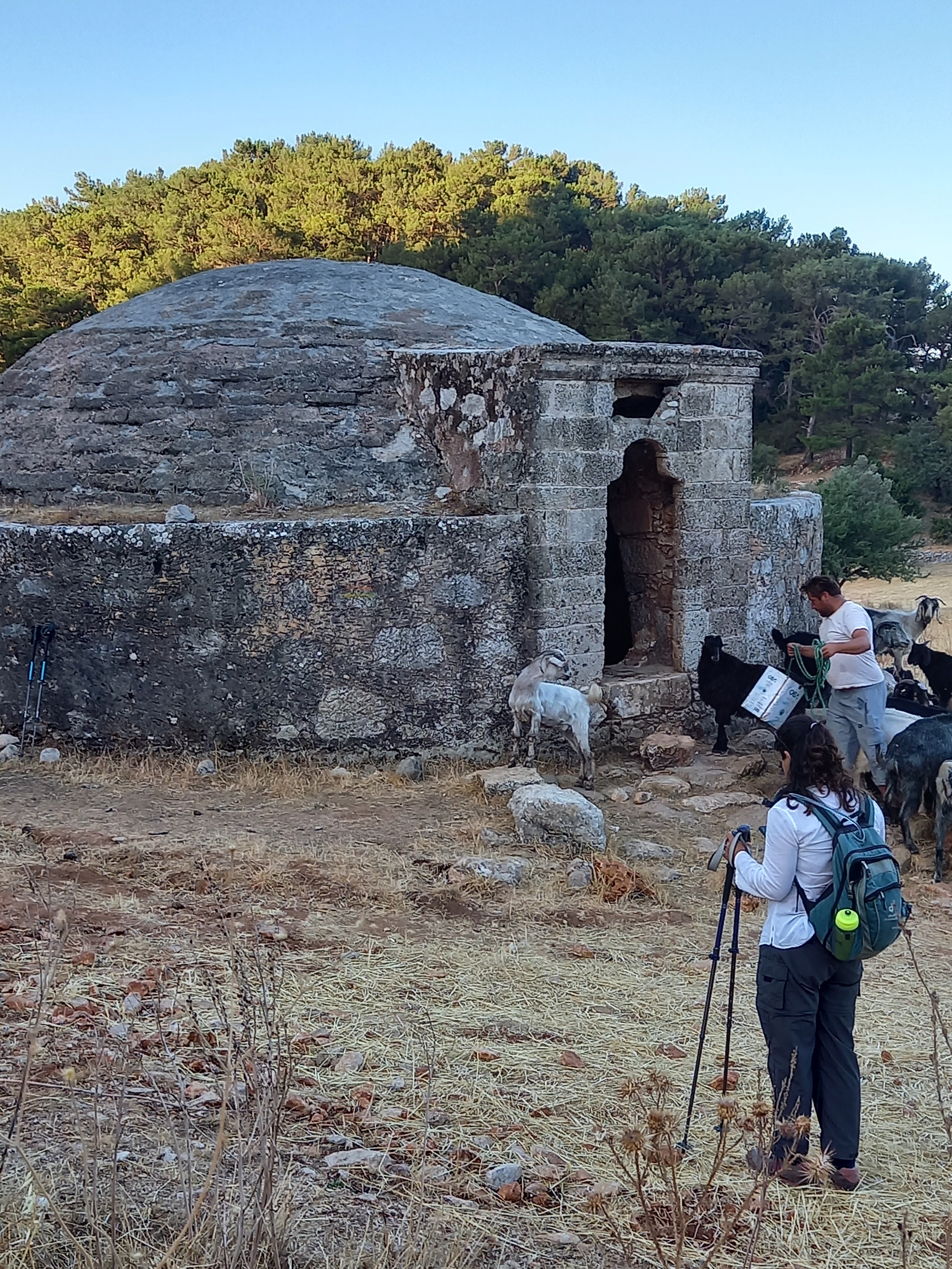 Tu se odvije prikaz žive zgodovine. Bizantinska cisterna iz 17. stoletja je še danes nepogrešljiv vir vode. Ob cisterni pastir s posebnimi kriki zbere čredo koz, da potešijo jutranjo žejo. Z vedrom iz nje zajema vodo in jo preliva v korito pred njo. Navdušeni nad inženirskimi dosežki bizantincev se odpravimo naprej.