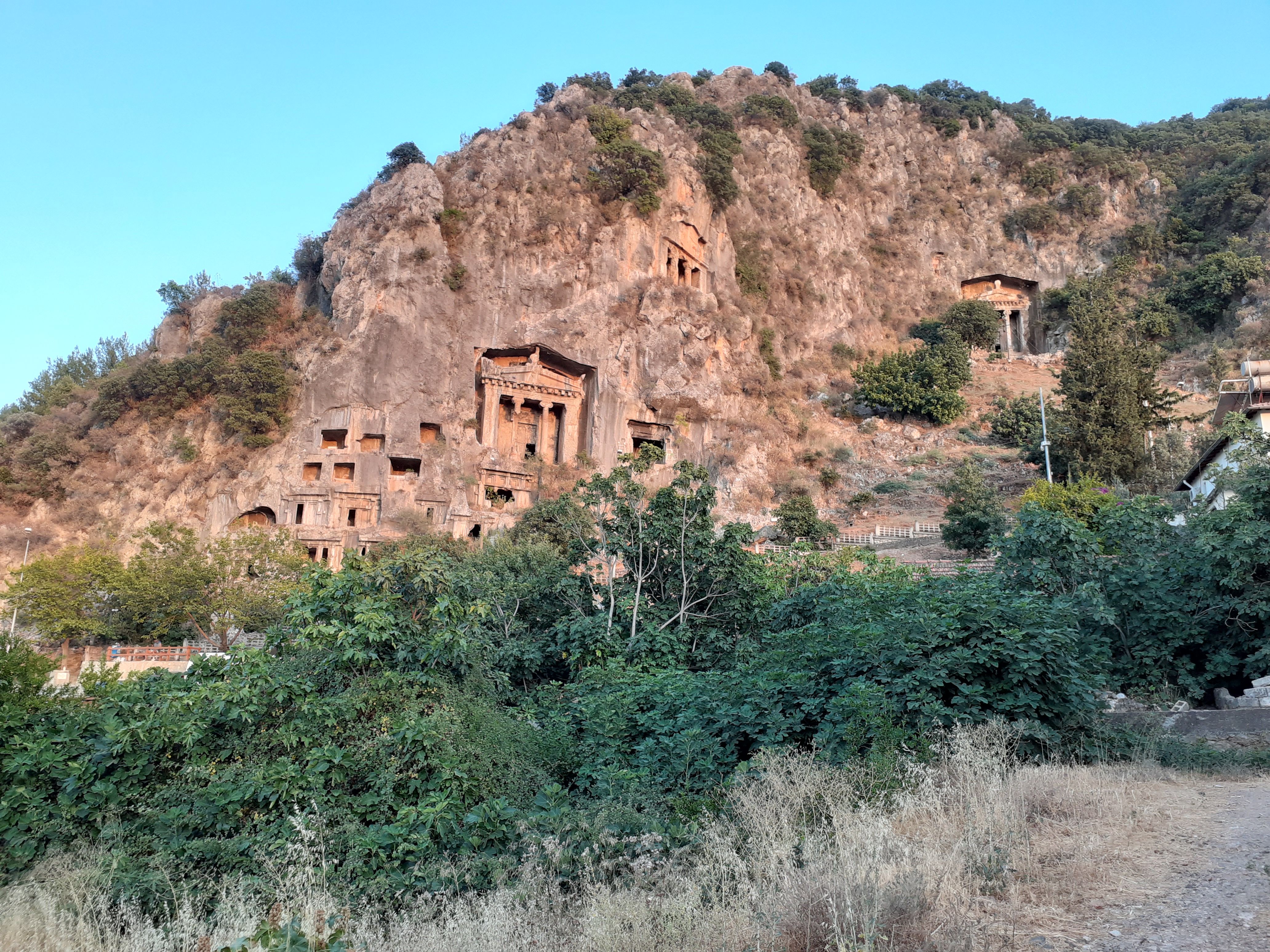 Popoldan smo prispeli v lep hotel v turškem letoviškem kraju Ölüdeniz, ki bo naša baza naslednje 3 dni. Pred večerjo pa še skok v mesto Fethiye. Tam me prevzamejo v skalo vklesane grobnice antičnih veljakov. Uau!
