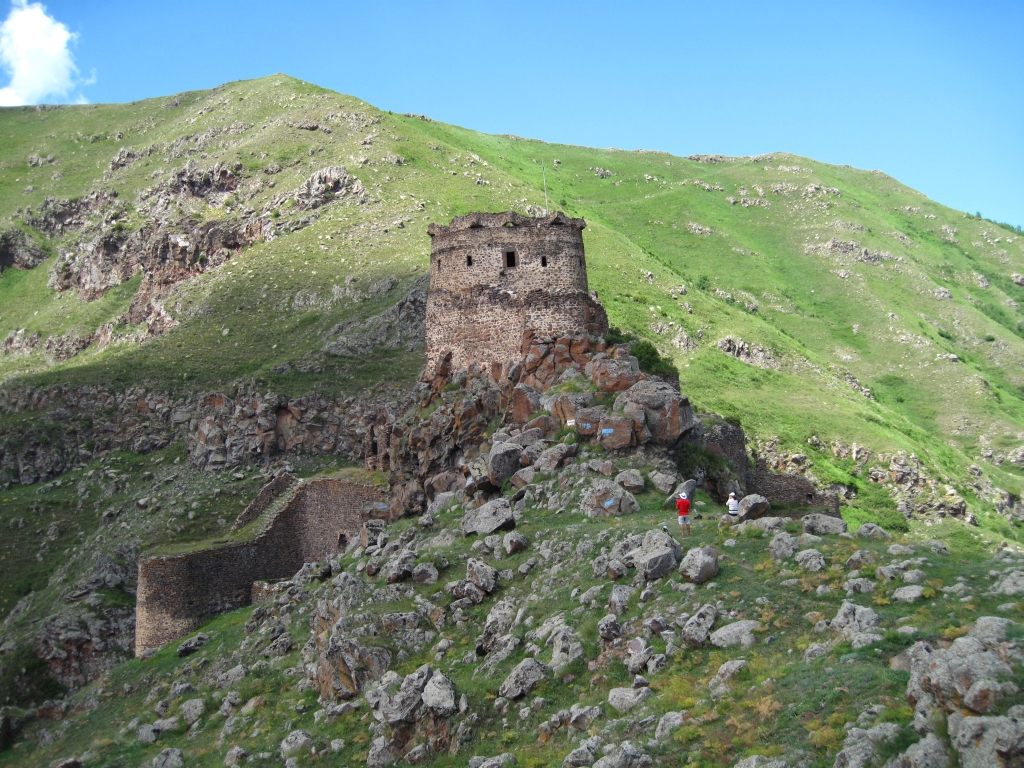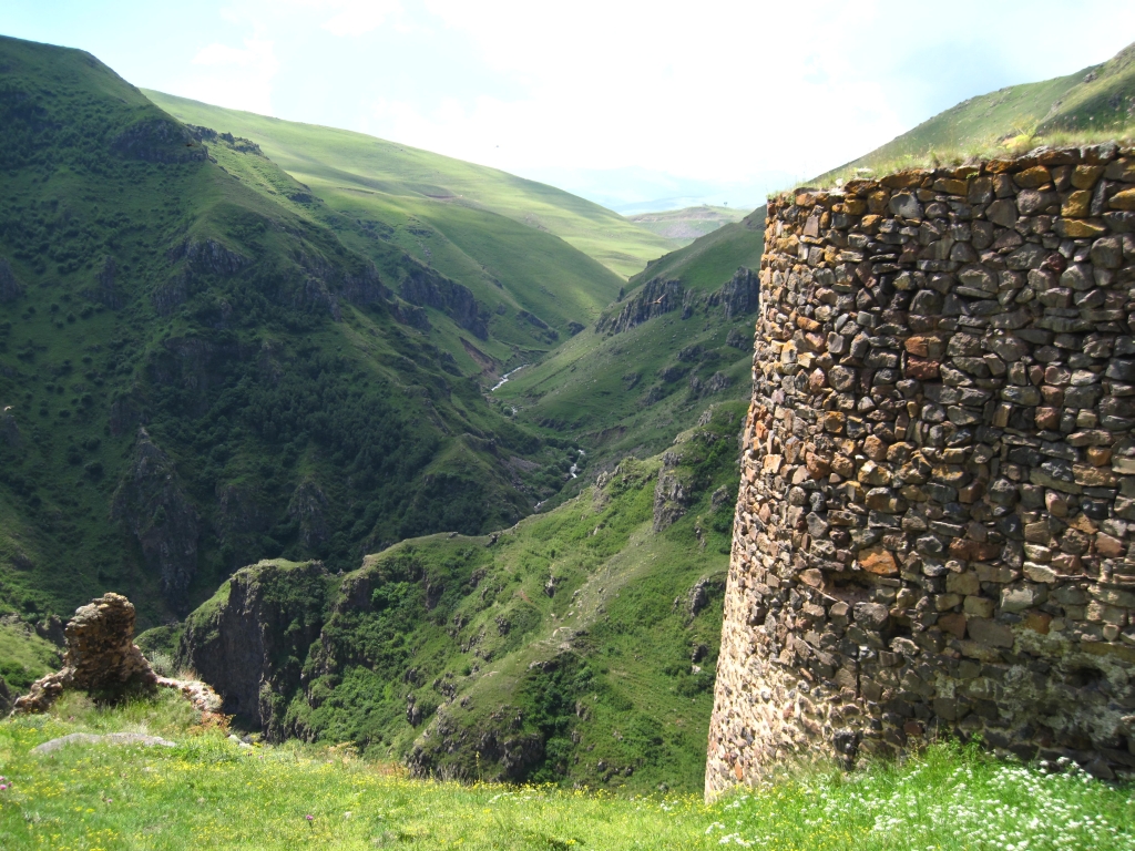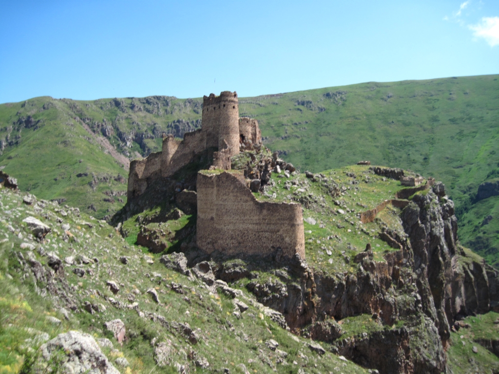 In sicer smo se podali po neznanih cestah ob Armenski meji, v deželo sotesk in neprehodnih hribov in kar na enkrat se je tam v daljavi zasvetlikalo, nekaj rjavega, na skali visoko nad sotesko, le kaj bi lahko bilo. Iz ceste je izgledala neka mala ruševina. Pa pojdimo pogledat je rekel naš vodja Osman.