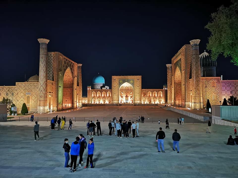 Zajtrk. Timurlenkovo mesto je eno najlepših mojstrovin svetovne arhitekture, ki so ga gradili Grki, Arabci in Mongoli. V pestri mešanici starega in novega nas očarajo najlepše zgradbe, ki smo jih kadarkoli videli. Obiščemo slavni trg Registan, ki poleg Ishafanskega trga velja za najlepšega na svetu. Obkrožajo ga tri mogočne medrese. V bližini se nahaja tudi mošeja Bibi Hanum, ki jo je Timur posvetil svoji ženi, o kateri krožijo zanimive legende. Seveda obiščemo Timurlenkov mavzolej Gur-i Mir. Pika na i dnevu pa je obisk Timuridske nekropole Shah-i Zinde, kjer nas očara kalejdoskopska zbirka keramičnega okrasja mavzolejev princes in princev. Prosto za lastno raziskovanje. Odpravimo se še na znamenito pokušino vina. Skupno večerno raziskovanje osvetljenih mestnih znamenitosti nas zapelje v pravljico iz 1001 noči. Večerja in nočitev. (H, ZV)