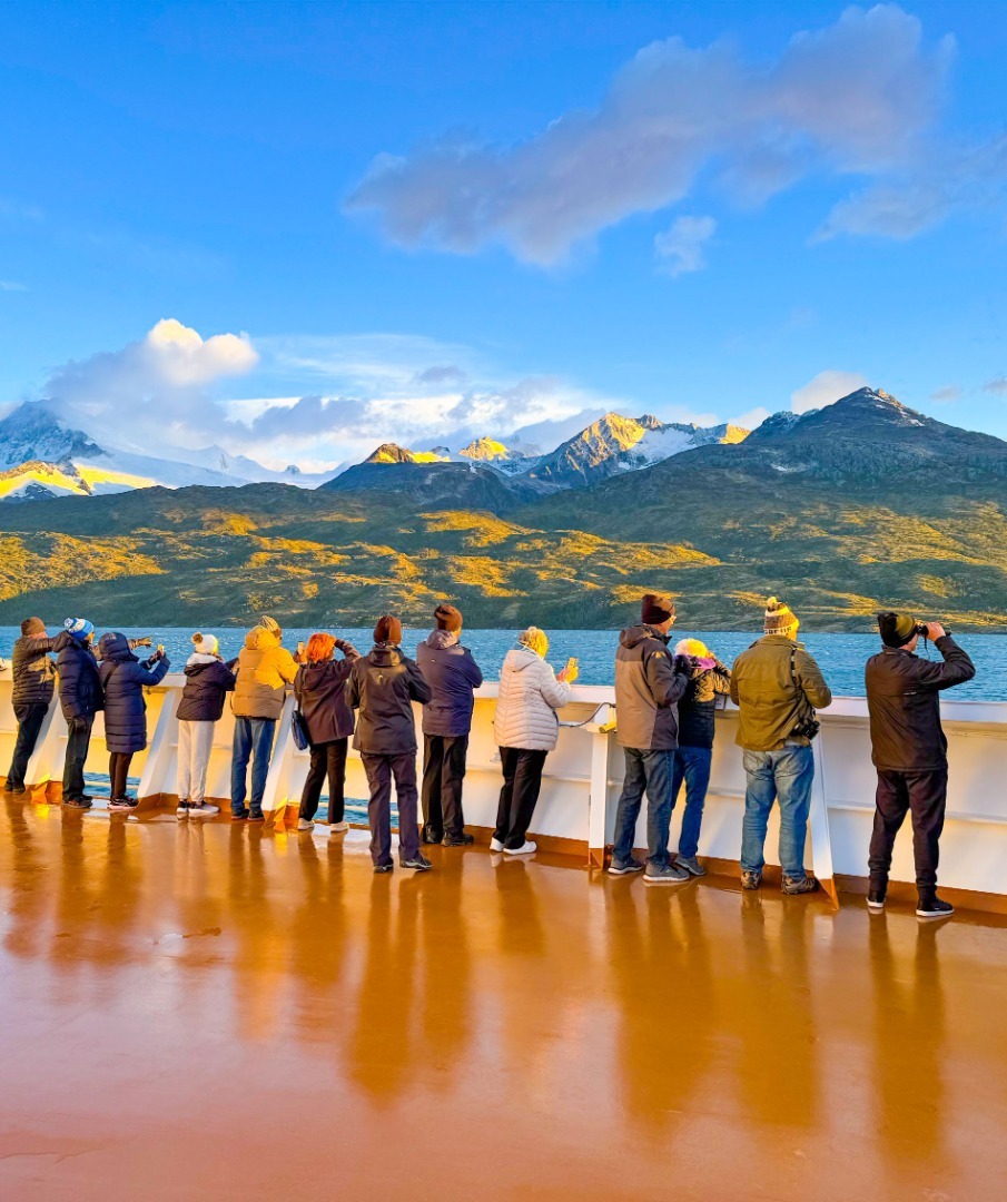 –  plovba skozi čilenske fjorde, Magellanov preliv, Cockburn in Beaglov kanal, Cape Horn in ob Alley ledeniku.