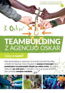 TEAMBUILDING Z AGENCIJO OSKAR Naši teambuildingi so zasnovani na avtorski potovalni filozofiji in vodniški šoli Agencije Oskar. Bogatijo jih znanja in koncepti , ki so preizkušeni na potovanjih skupin po celem svetu . So butični, oblikovani po vaši meri in usmerjeni v cilj, ki ga skupaj določimo. Zato prinašajo merljive rezultate. Zakaj z nami? pošljite povpraševanje